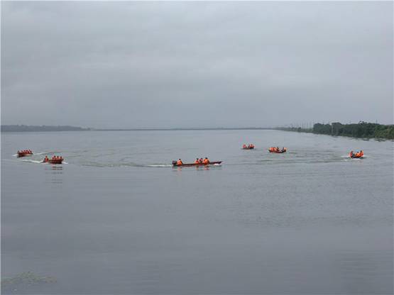 在巡堤查險演練中,巡邏人員列隊整齊,井然有序地進行查險工作;在管湧險情現場處置演練時,60名搶險隊員跑步進入現場,迅速開始搶險;在應急排澇演練中,縣綜合應急救援隊火速進場,用移動式水泵進行排澇;在水上救援演練過程中,六艘衝鋒舟對湖中目標假人開展救援。整個演練中,各組隊員反應迅速、協同作戰,演練達到了預期的效果。