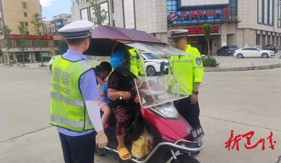 7月26日,嶽陽縣筻口鎮應急辦聯合派出所、交警新開四中隊開展交通安全整治和交通安全教育贈頭盔活動。