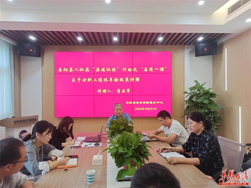 華聲在線11月17日訊(通訊員 王贏武 黃小黑)為使幹部職工更好地掌握人社政策及相關業務知識,進一步提高幹部職工業務能力和服務水平,全麵加強窗口隊伍建設、打造一流人社服務。11月15日,嶽陽縣社會保險服務中心開展“溫暖社保”之“每周一課”培訓活動,社保中心全體職工參加。