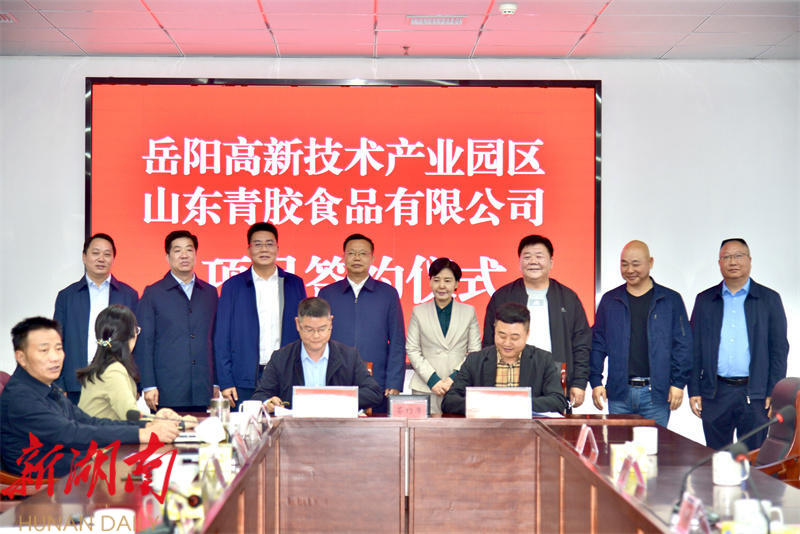 湖南日報·新湖南客戶端11月10日訊(通訊員 袁穎 周星亮)11月9日上午,山東青膠膠原蛋白製品項目簽約儀式在嶽陽縣嶽陽高新技術產業園區舉行,標誌著嶽陽縣向打造“600億產業園區”目標再邁堅實一步。市人大常委會主任、黨組書記馬娜出席並致辭。副市長陳閣輝,縣委書記肖湘暉,縣委副書記、縣長吳光文,山東青膠食品有限公司董事長劉學超,縣領導王靖、李櫻出席儀式。