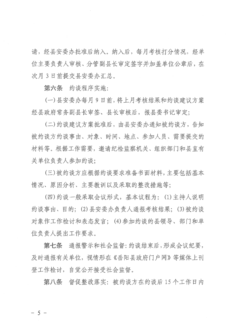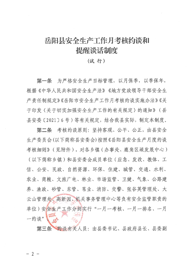 嶽陽縣安全生產工作月考核約談和提醒談話製度(試行)
