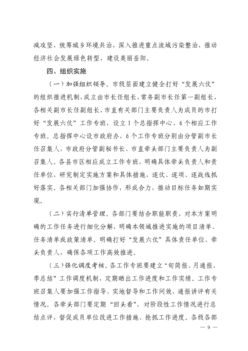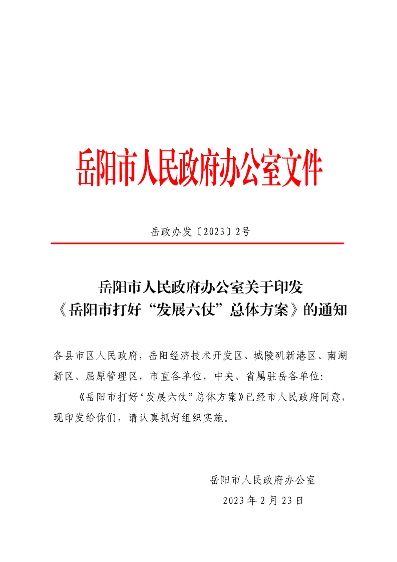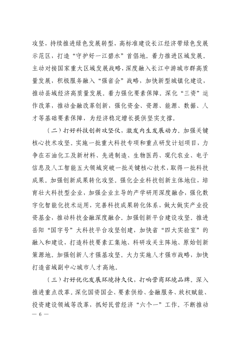嶽陽市打好“發展六仗”總體方案