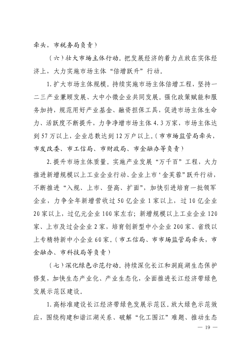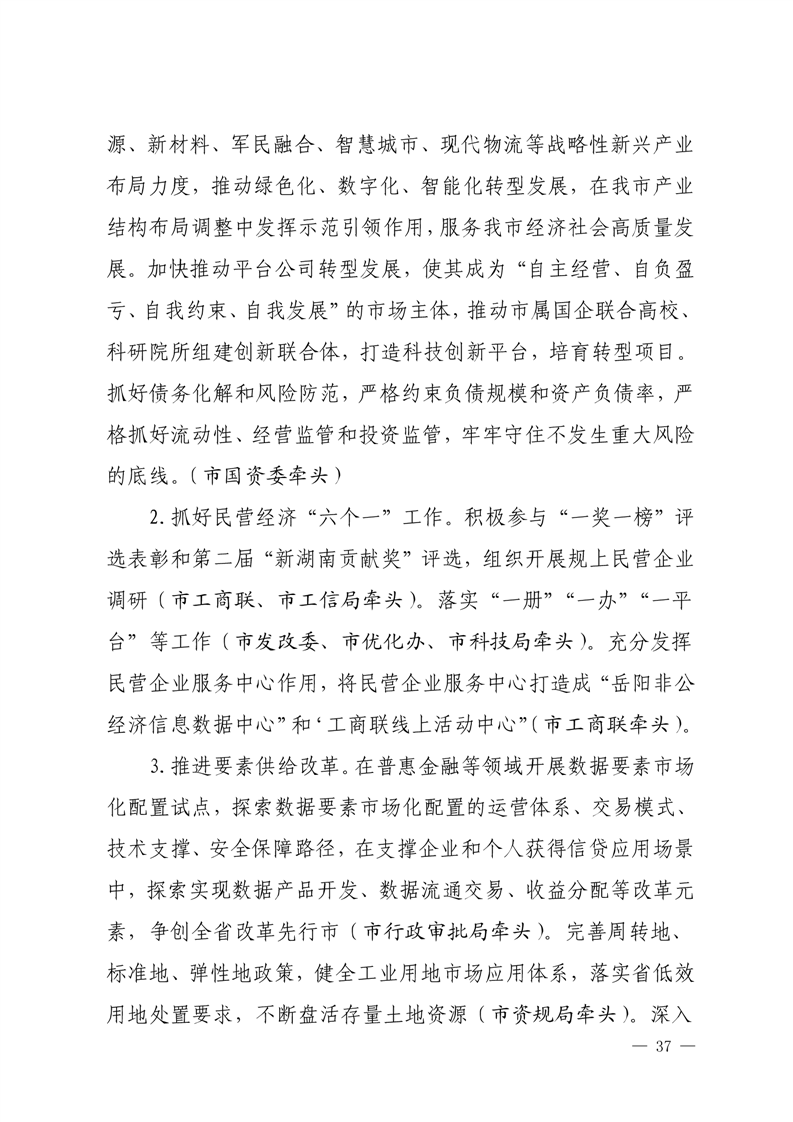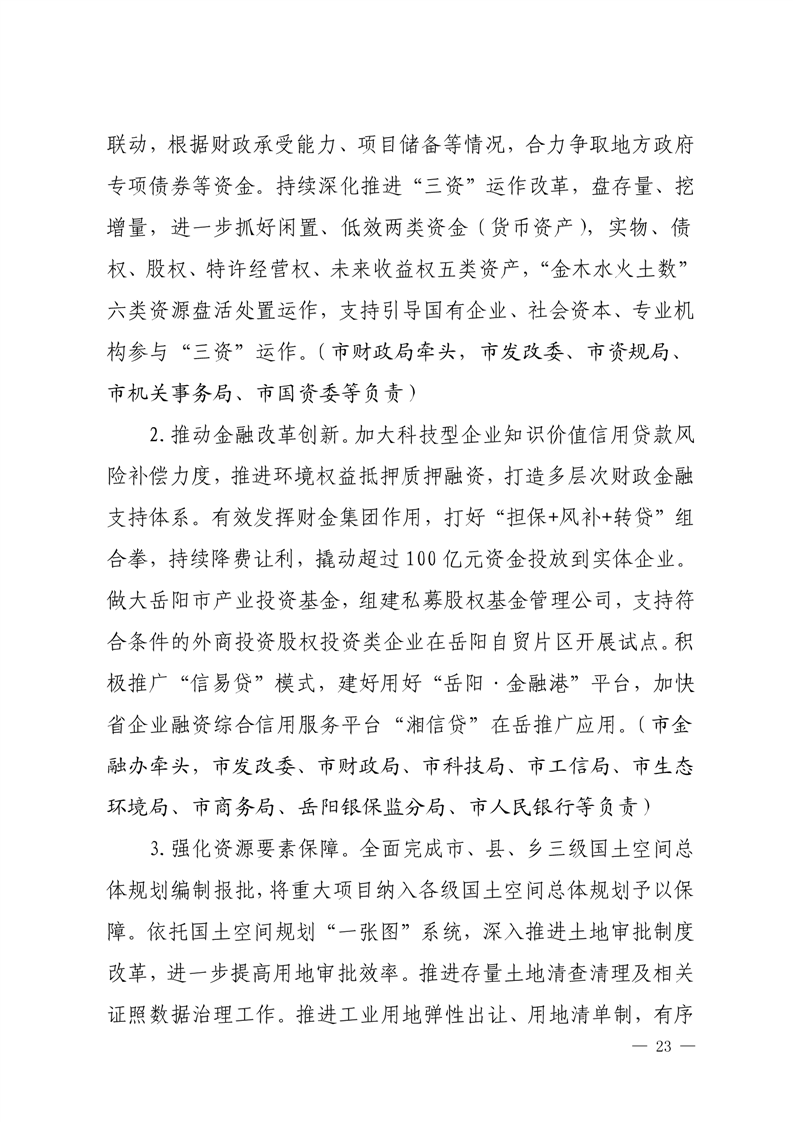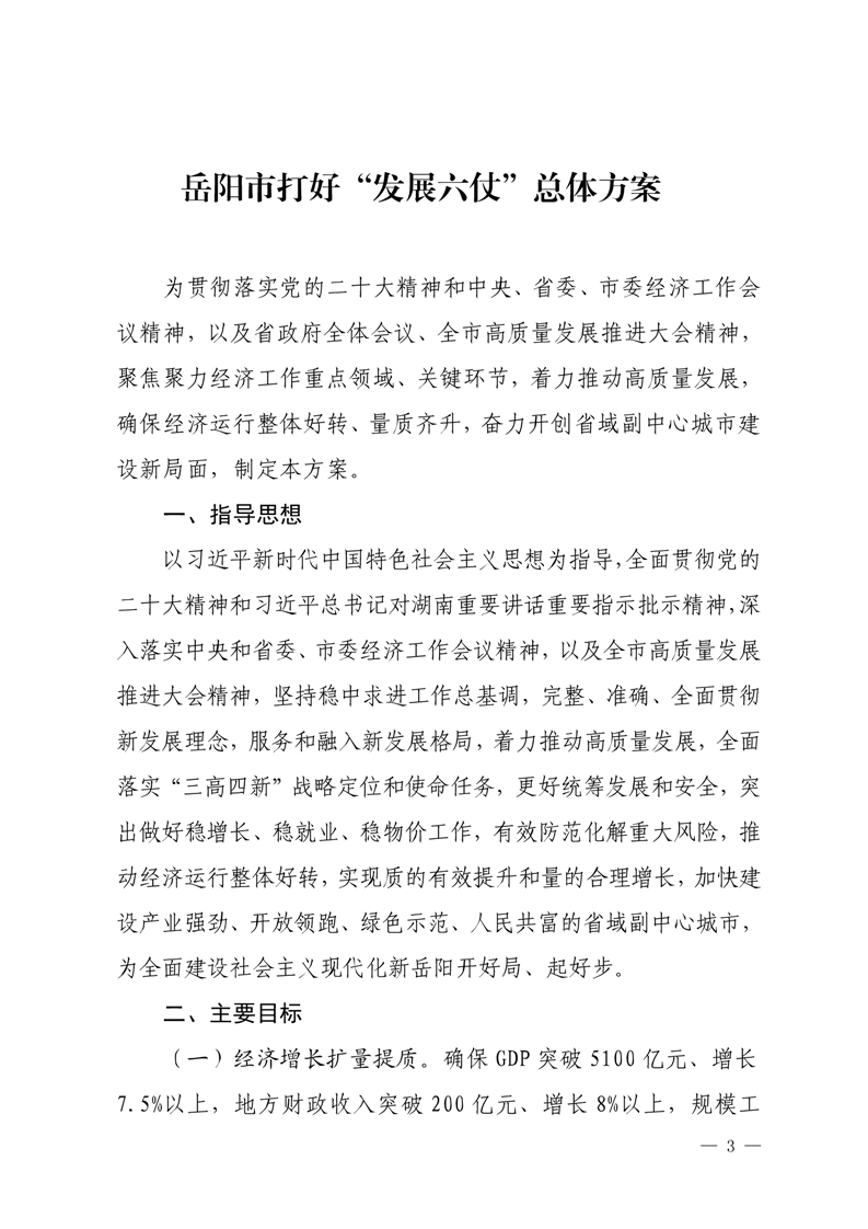 嶽陽市打好“發展六仗”總體方案