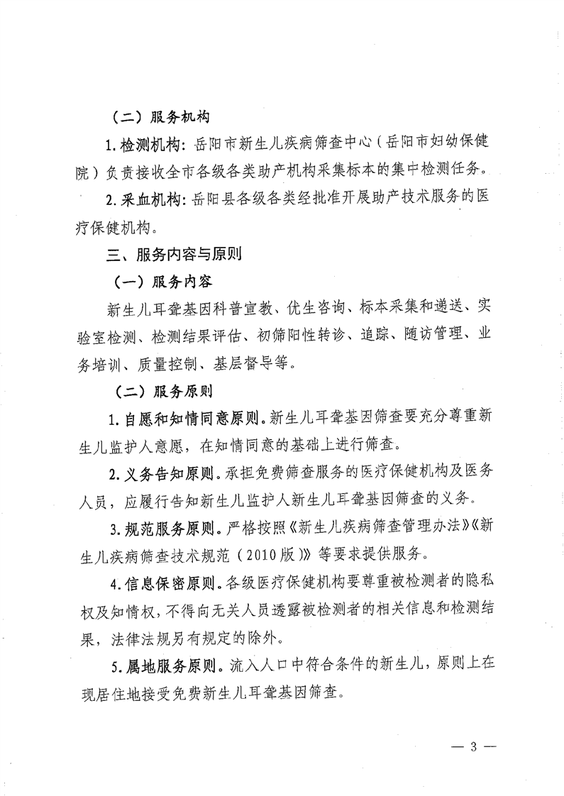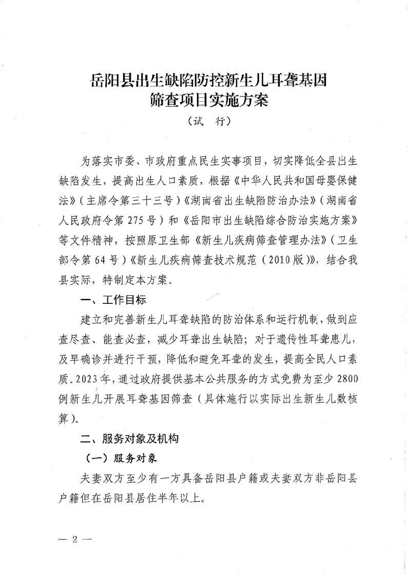 《關於印發嶽陽縣出生缺陷防控新生兒耳聾基因篩查項目實施方案(試行)的通知》