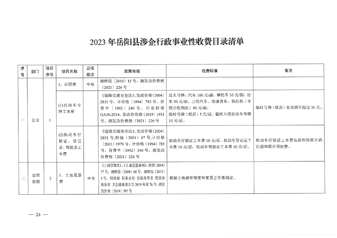 關於公布《2023年嶽陽縣行政事業性收費目錄清單》《2023年嶽陽縣涉企行政事業性收費目錄清單》的通告