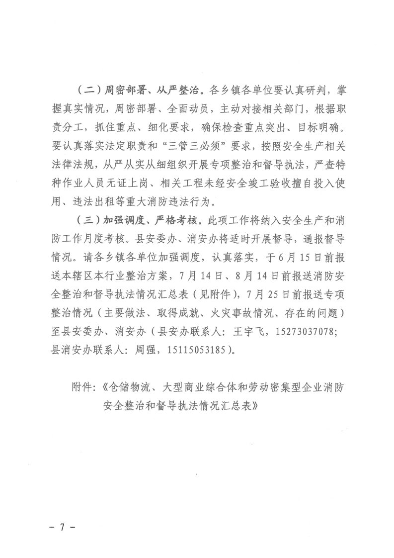 全縣倉儲物流、大型商業綜合體和勞動密集型企業消防安全專項整治工作方案