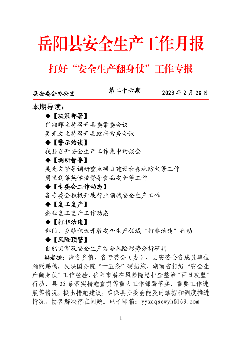 嶽陽縣打好安全生產翻身仗工作月報(二十六期)