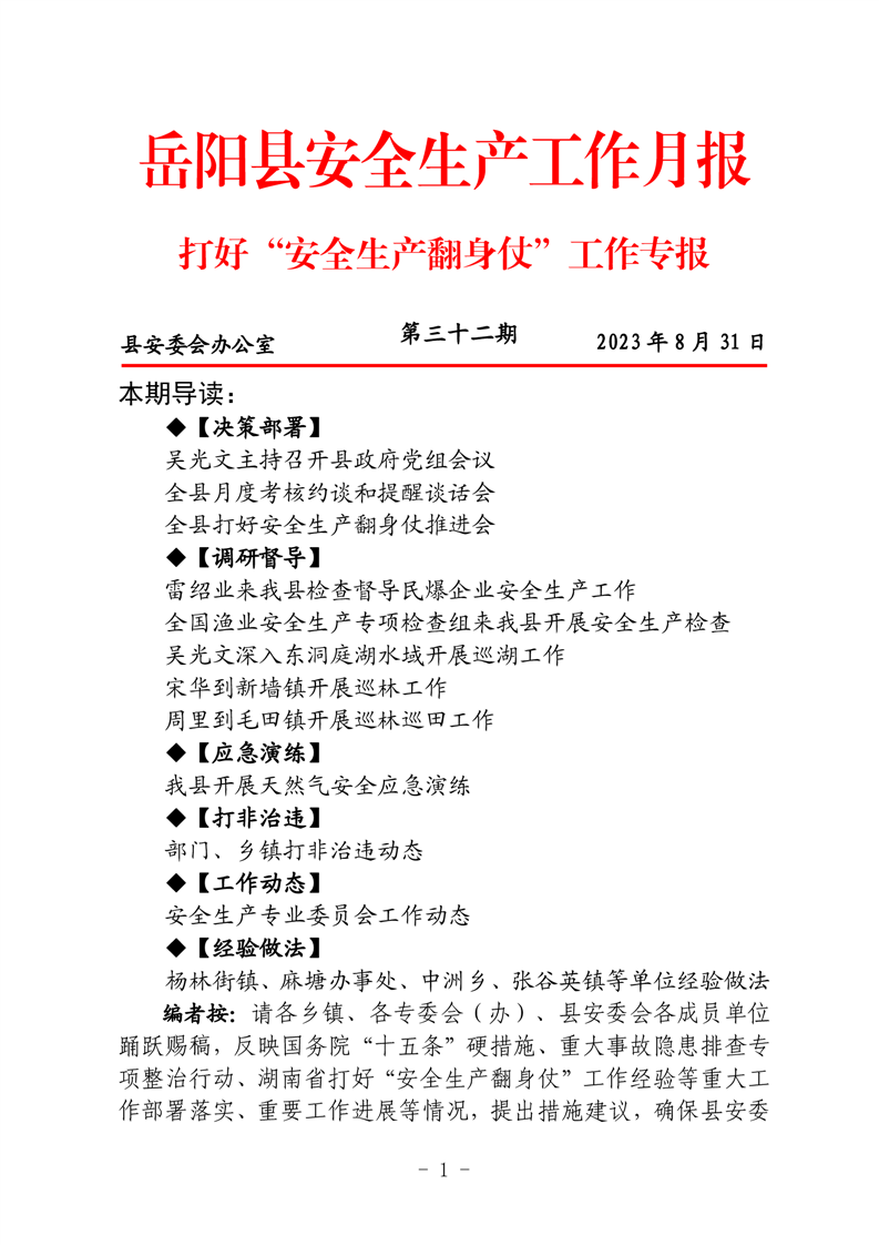 嶽陽縣打好“安全生產翻身仗”工作專報(三十二期)