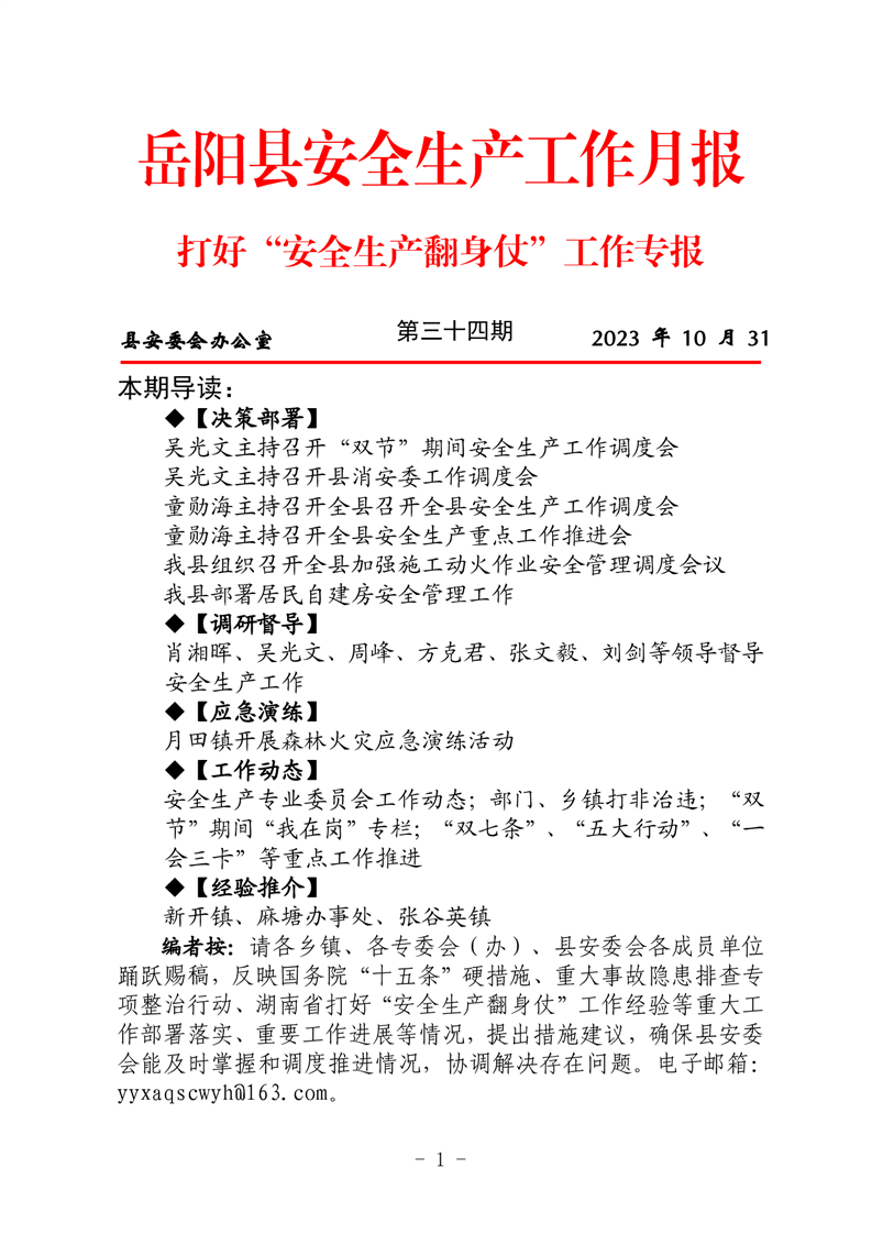 嶽陽縣打好“安全生產翻身仗”工作專報(三十四期)