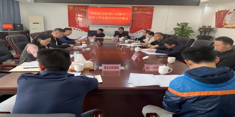 今年是習近平總書記殷殷囑托嶽陽“守護好一江碧水”五周年,為深入踐行習近平生態文明思想,全麵展示嶽陽縣紮實推進綠色發展取得的重要成果,進一步提升全縣群眾的生態環保意識,近日,嶽陽縣召開了“守護好一江碧水”政務公開主題月活動部署會,縣政府辦副主任戴永紅主持會議並講話,縣政務服務中心負責人、縣東管辦、縣水利局、縣政協辦等11家單位分管領導參加了會議。