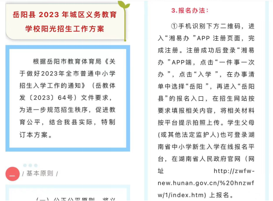 據悉,嶽陽縣城區2023年城區一年級、七年級新生共4515人,通過“湘易辦”報名入學人數4308人,比例達95.42%。
