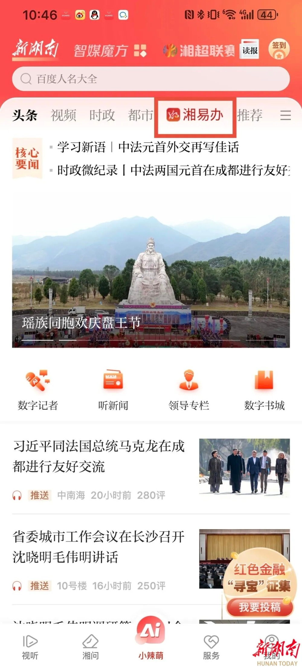 “湘易辦”首頁金剛區已上線新湖南資訊