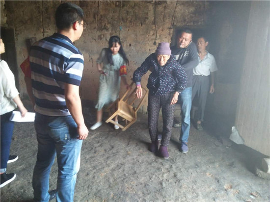 工作人員上門為重度殘疾人辦證並配送輔具