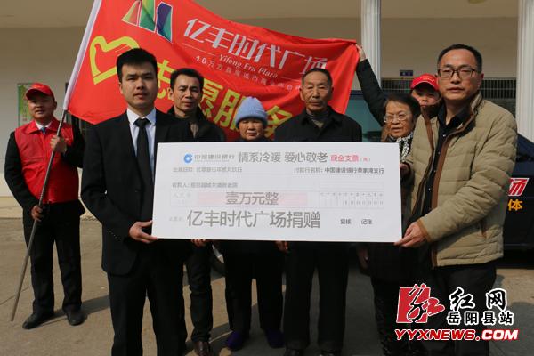 2-10,億豐時代廣場誌願服務隊一行8人,來到黃沙街敬老院和城關鎮敬老院,看望慰問生活在敬老院的老人。誌願者們與老人親切交談,仔細訊問他們的生活狀況,並代表項目部向每個敬老院捐贈1萬元愛心款。隨後,誌願者們又深入-田、毛田等鐵山庫區鄉鎮,走訪慰問了100戶貧困家庭,並向每戶家庭送上愛心款500元。在這寒冷的冬,億豐人的濃濃溫情,為老人們和貧困家庭帶來一股暖流。