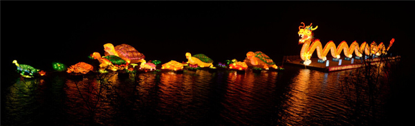 其中,“一龍趕九龜”燈組全長150米,是迄今為止湖南省最長的水上長龍,外觀大氣磅礴,充滿傳奇色彩;令人點讚的“美德教育長廊”燈組設計10個傳統教育經典故事,包括“聞雞起舞”、“孟母教子”等,人物栩栩如生,集中體現了社會主義核心價值觀內涵,讓廣大青少-寓教於樂;“侏羅紀探秘”燈組塑造了侏羅紀時期恐龍生活的真實場景,有體型巨大的霸王龍,也有憨態可掬的小恐龍,場景生動形象……除了原來的燈組,最近還新增了“--有餘”、“天鵝之戀”、“茶博園”、“鯉魚跳龍門”、“風鈴”、“金色風鈴”等6個燈組,為燈會增色不少。