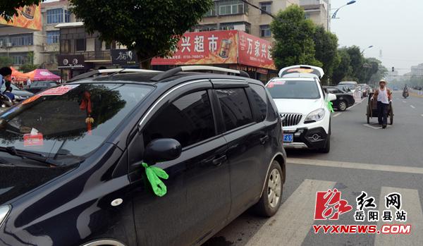 一對綠絲帶,代表免費誌願送考車,高考路上,招手即停。係有綠絲帶或貼有“愛心送考”的車輛載著考生,行駛在縣城街頭巷尾,匯聚成了一道靚麗的風景。