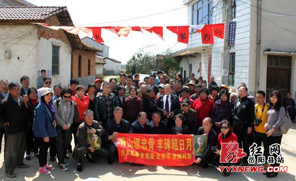 紅網嶽陽縣站4-7訊(分站記者吳擁民 許偉軍 通訊員周潔)4月7日,抗英雄史恩華的親屬團及長沙、嶽陽的老兵誌願者們到楊林鄉付朝村,追尋先祖墓地,緬懷英雄事跡。
