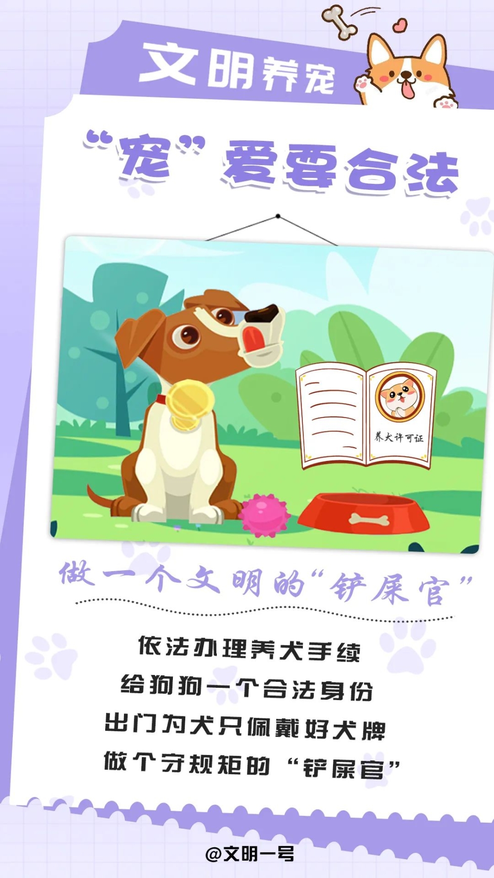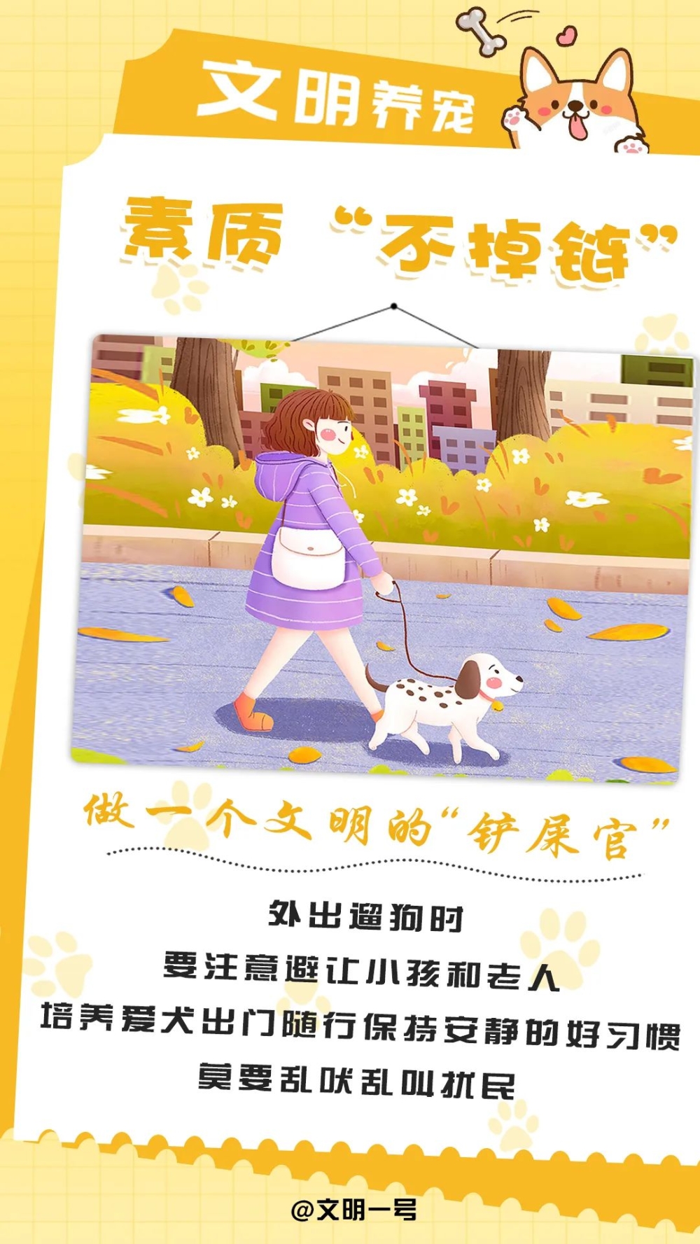 狗狗是关键词2人類的好朋友是很多養犬人心中的重要家庭成員它帶來了無數的快樂但與此同時一些不文明的養寵行為也為身邊人帶來困擾遛狗不牽繩的危險狗狗隨地大小便汙染環境……養犬者既然收獲了養犬的快樂就要承擔起文明養犬的責任!“寵”愛有方做一個文明的“鏟屎官”