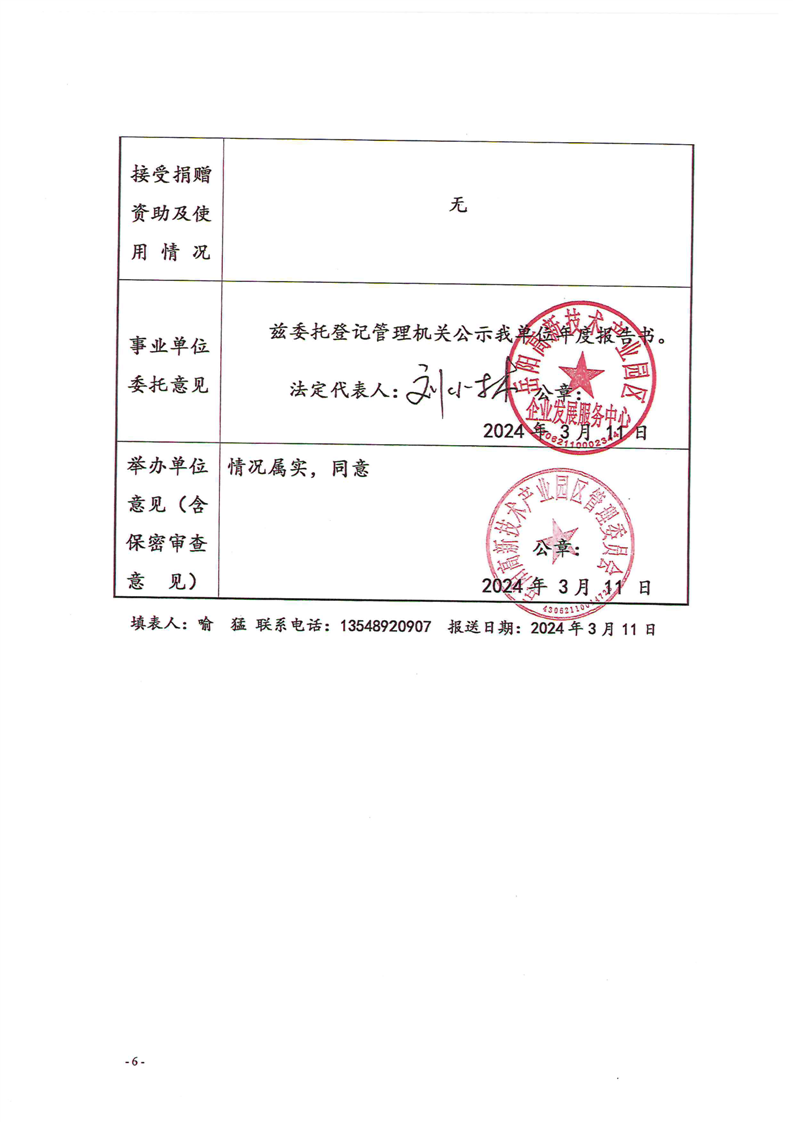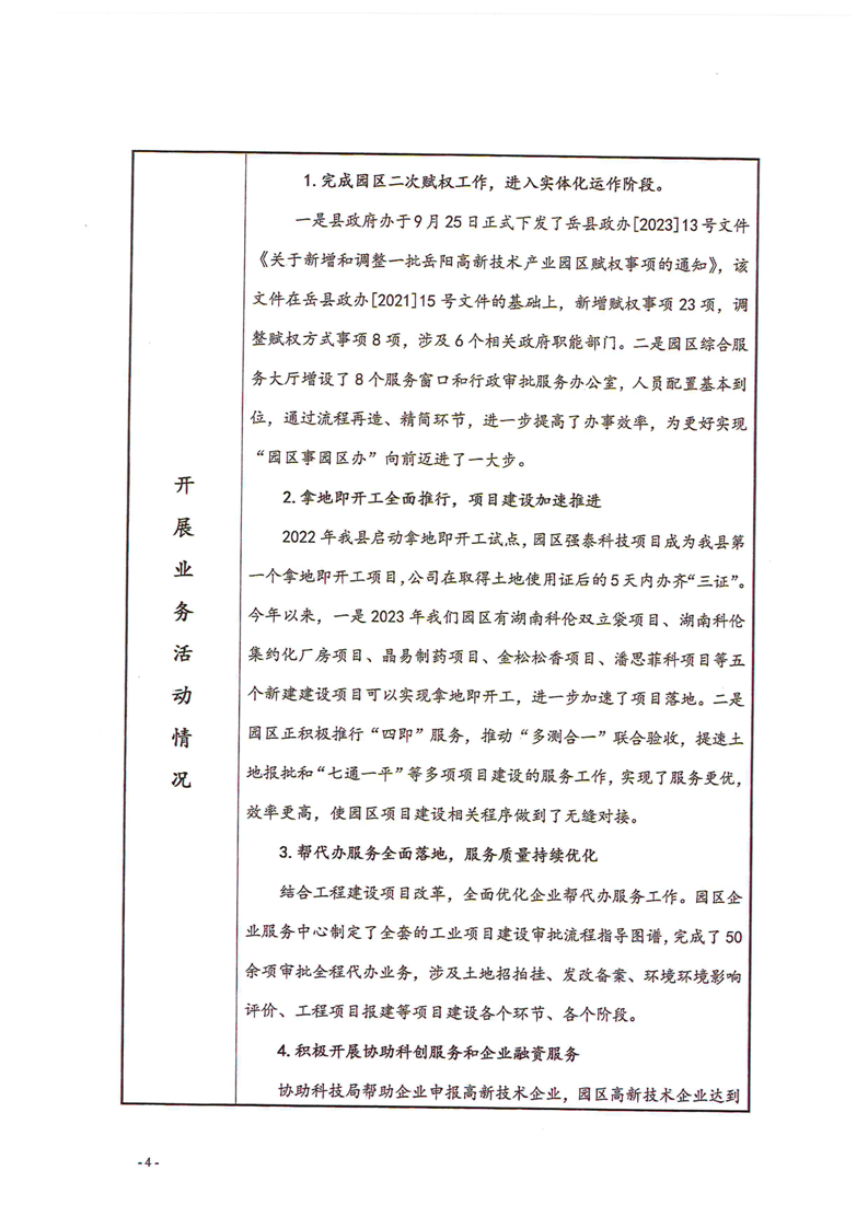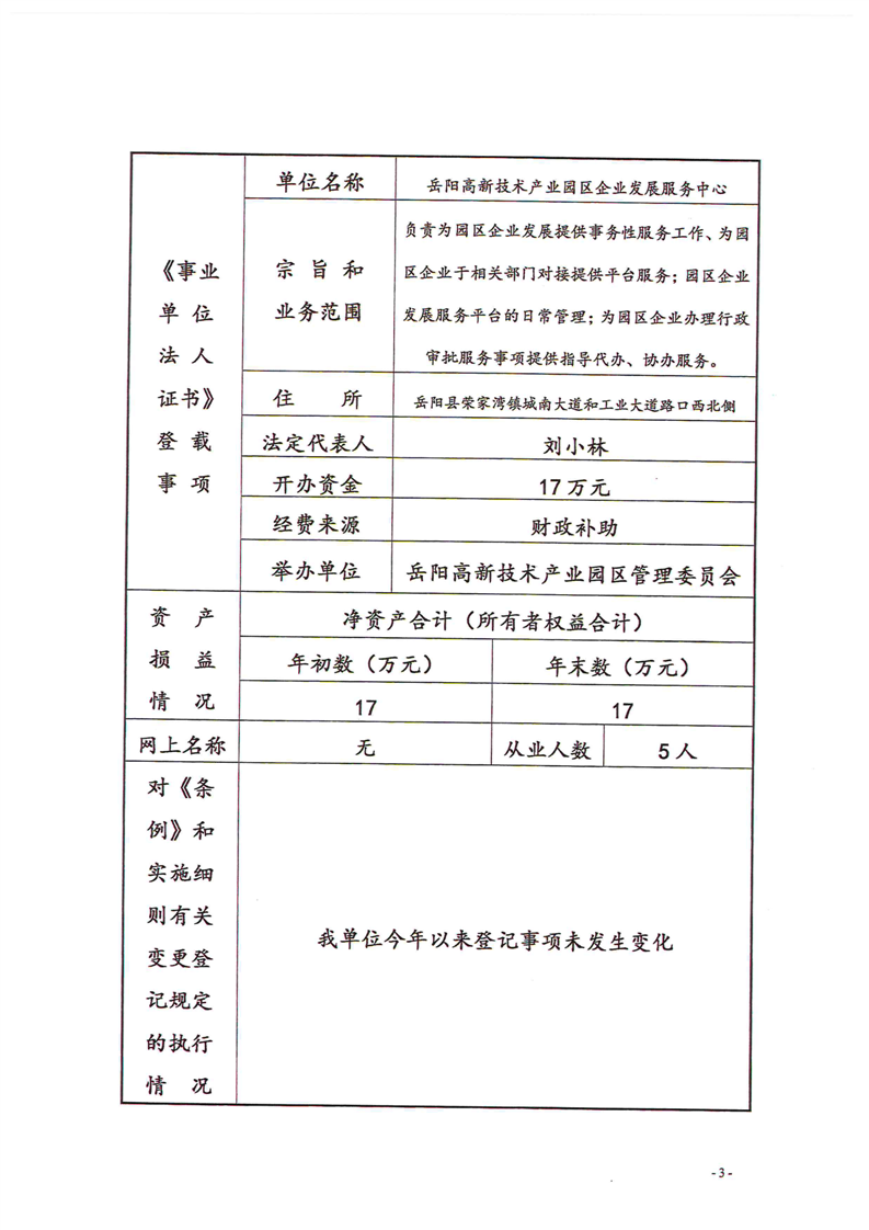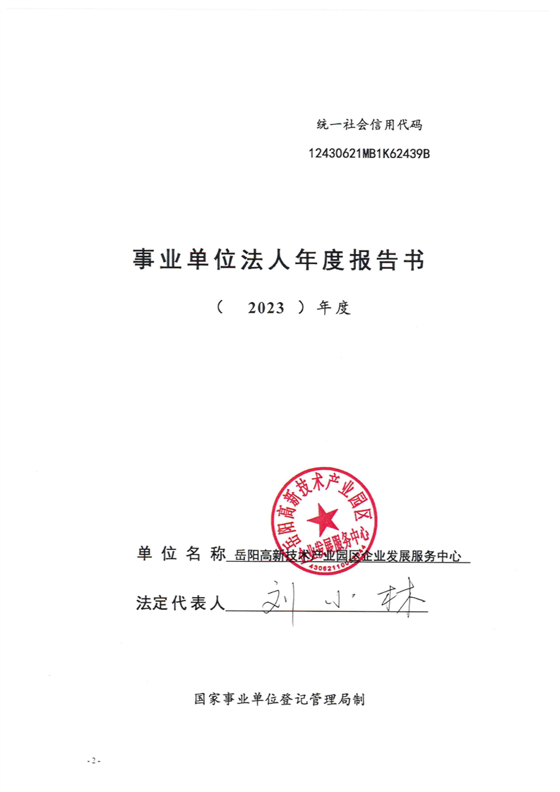 嶽陽高新技術產業園區企業發展服務中心2023年度事業單位法人年度報告書
