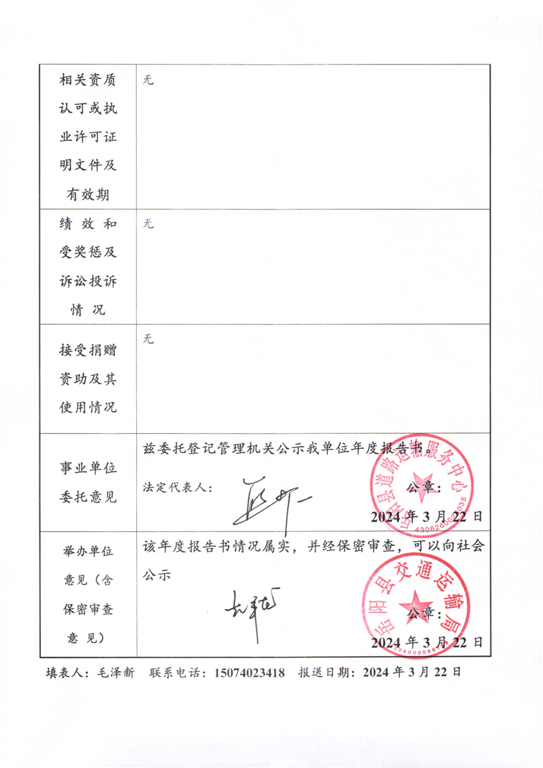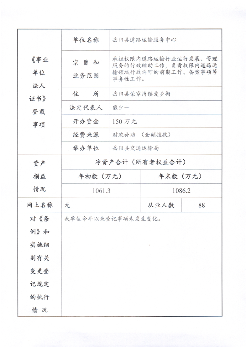 嶽陽縣道路運輸服務中心2023年度事業單位法人年度報告書