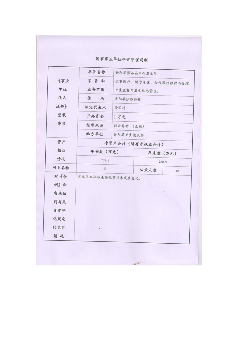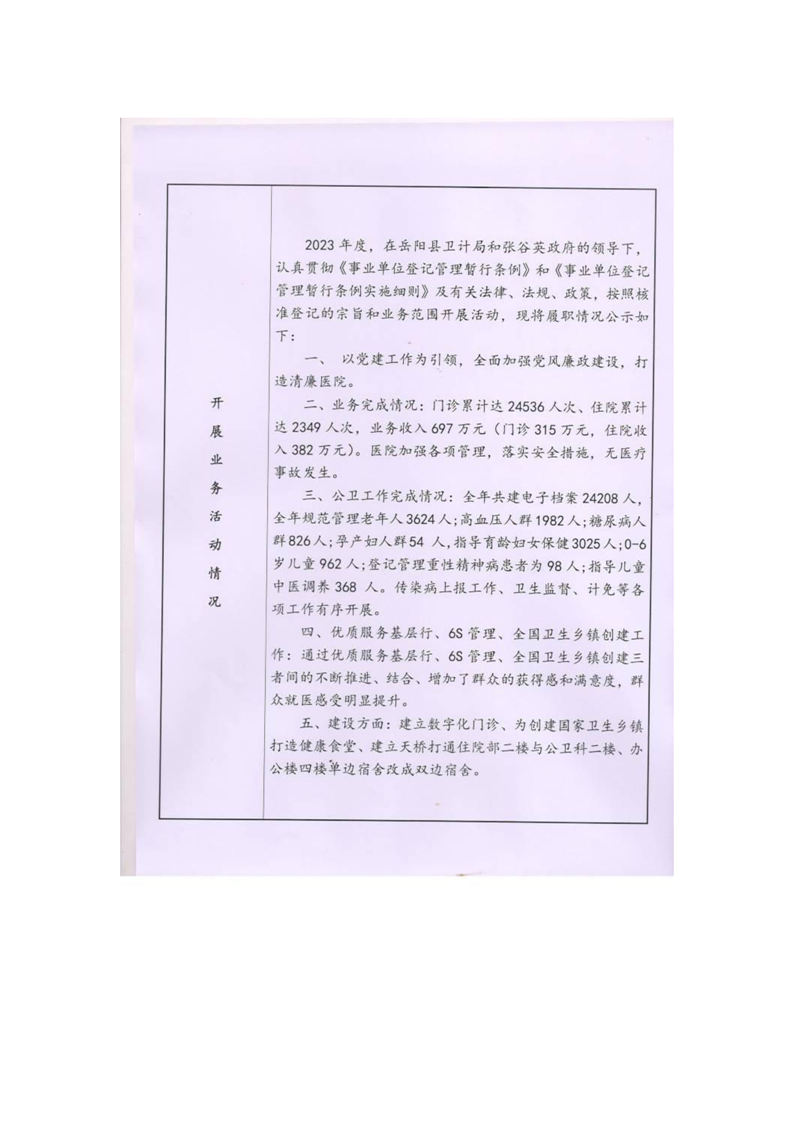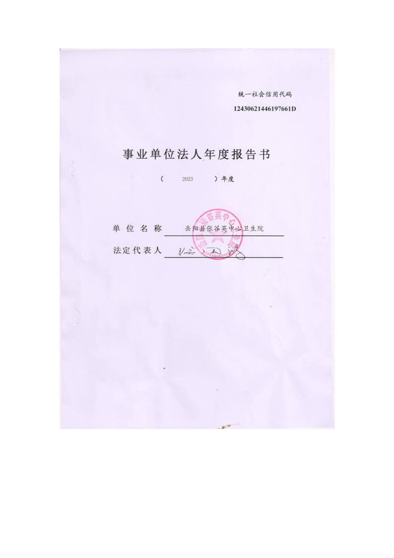 嶽陽縣衛生健康局張穀英鎮衛生院年度報告書