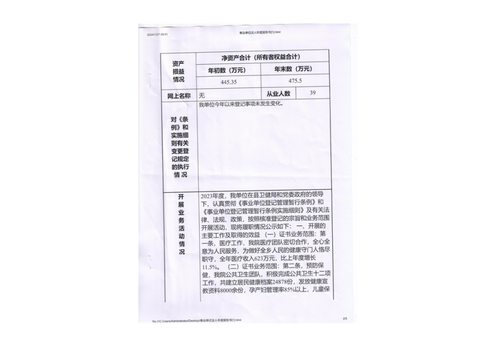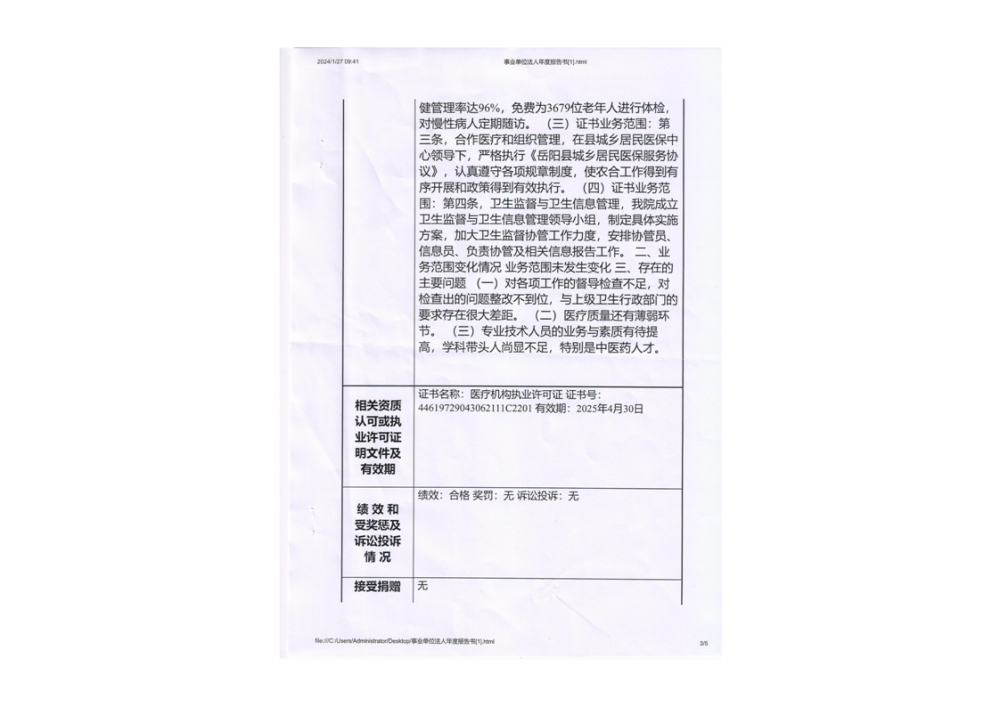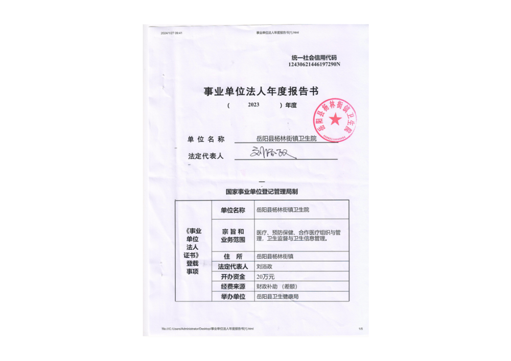 嶽陽縣衛生健康局楊林街鎮衛生院年度報告書