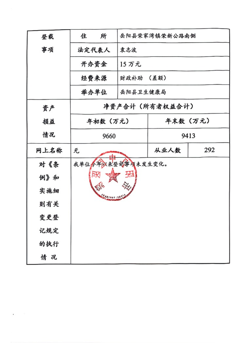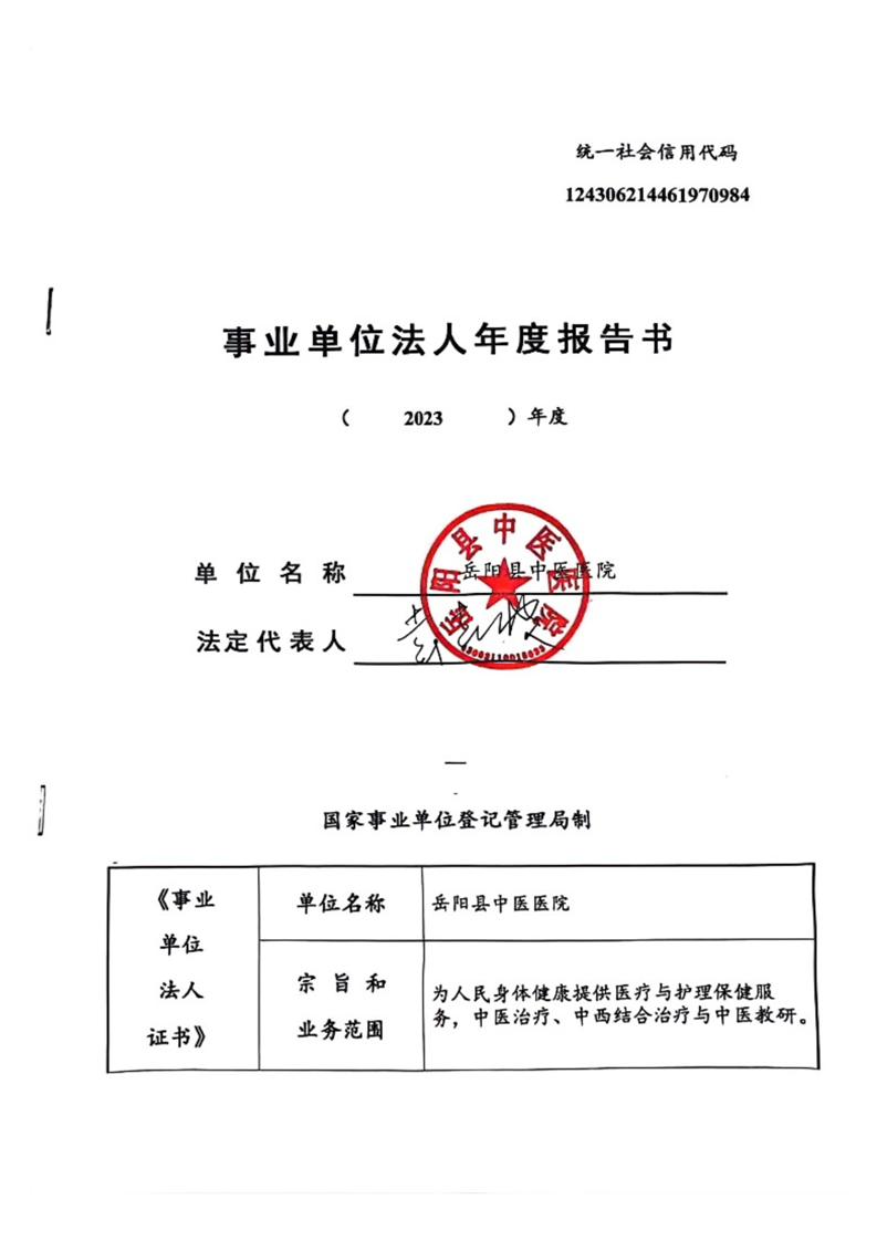 嶽陽縣衛生健康局縣中醫醫院年度報告書