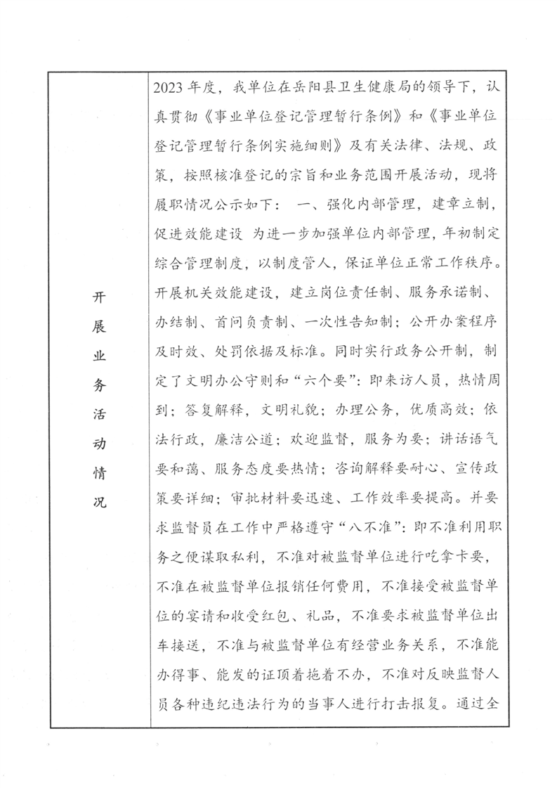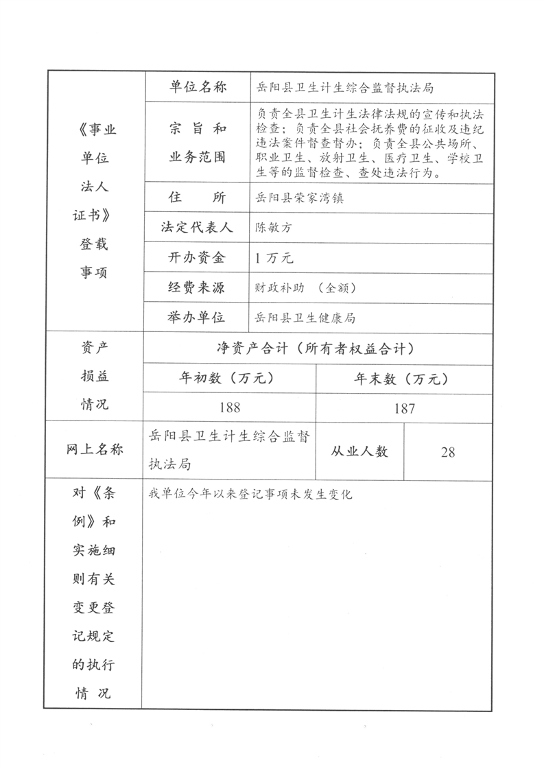 嶽陽縣衛生健康局縣衛生計生綜合執法局年度報告書