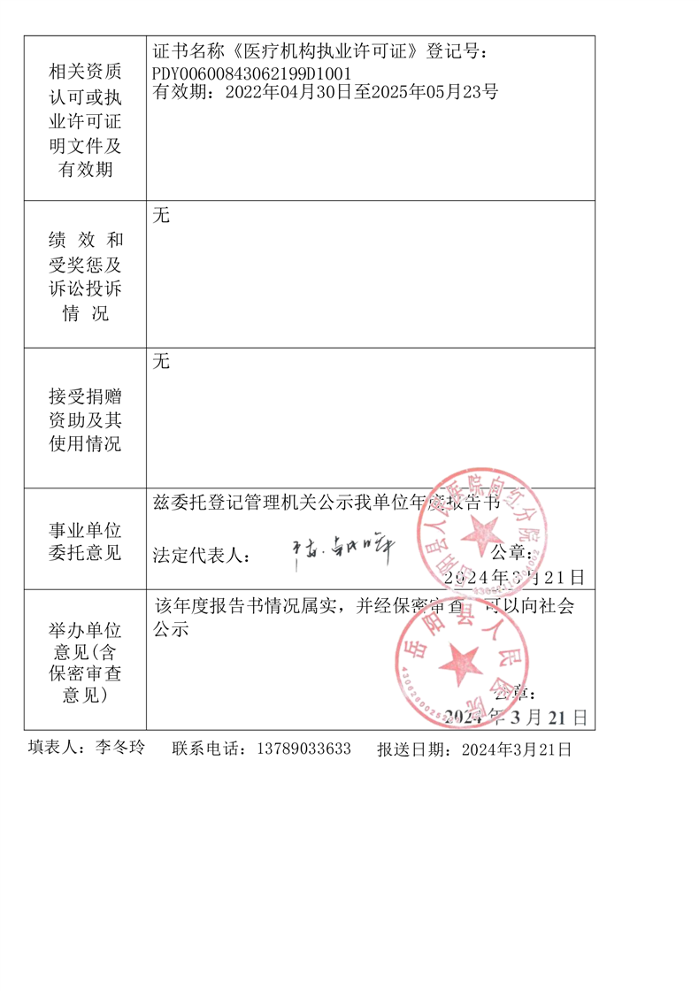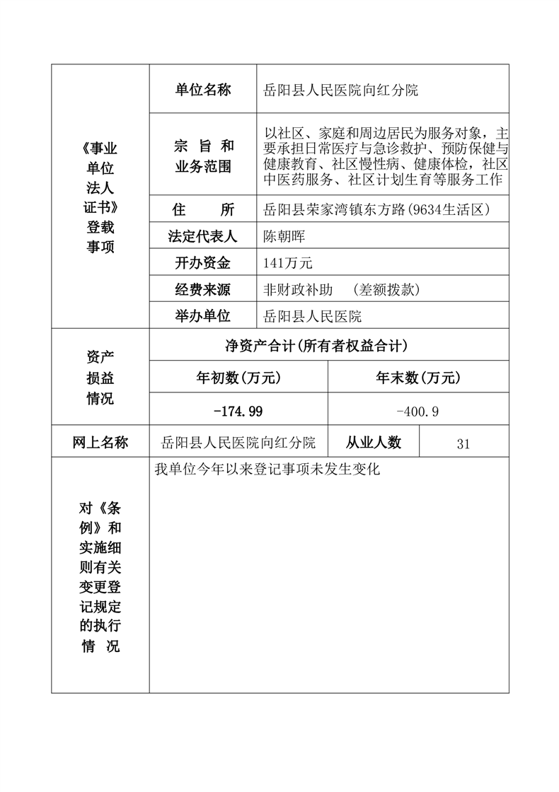 嶽陽縣衛生健康局縣人民醫院向紅分院年度報告書
