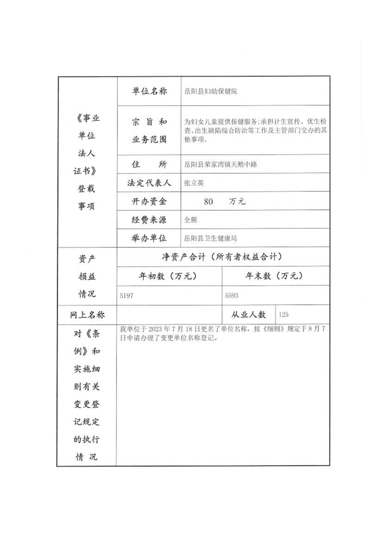 嶽陽縣衛生健康局縣婦保院年度報告書
