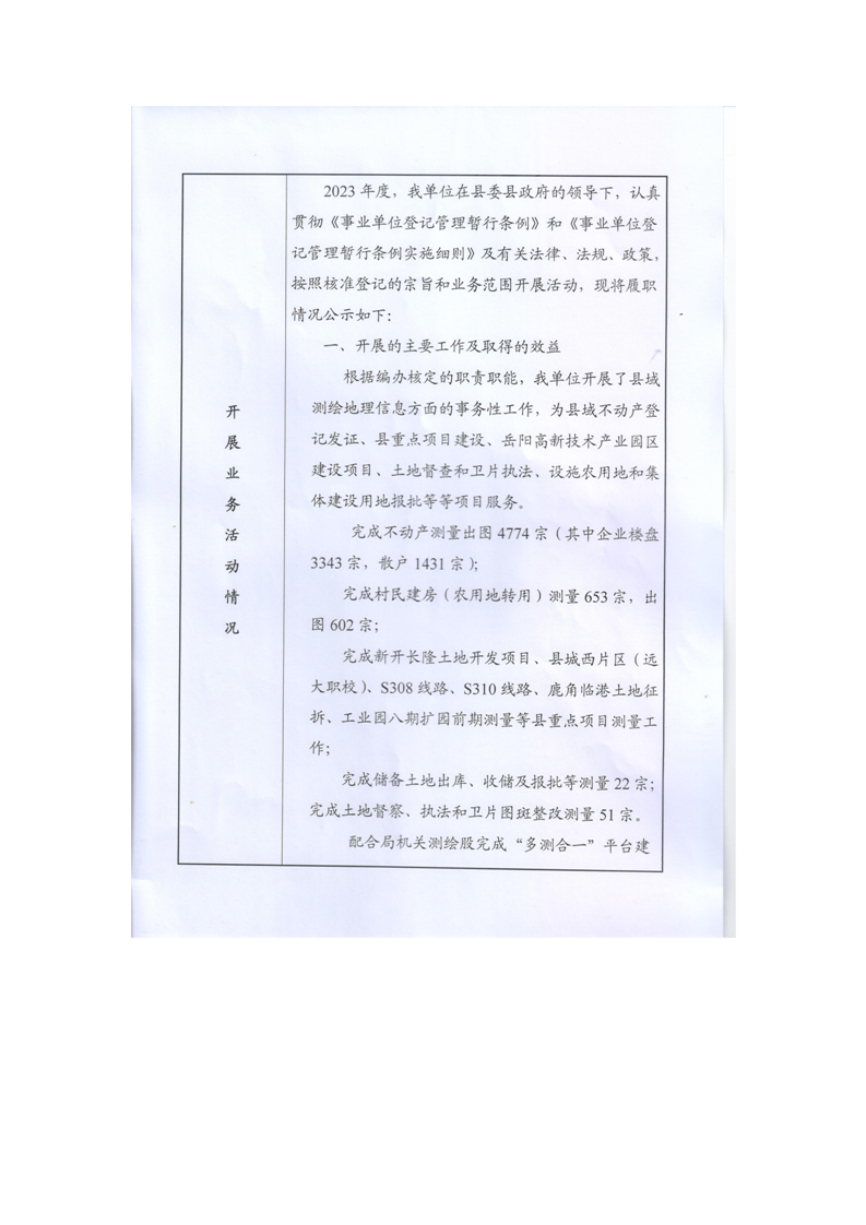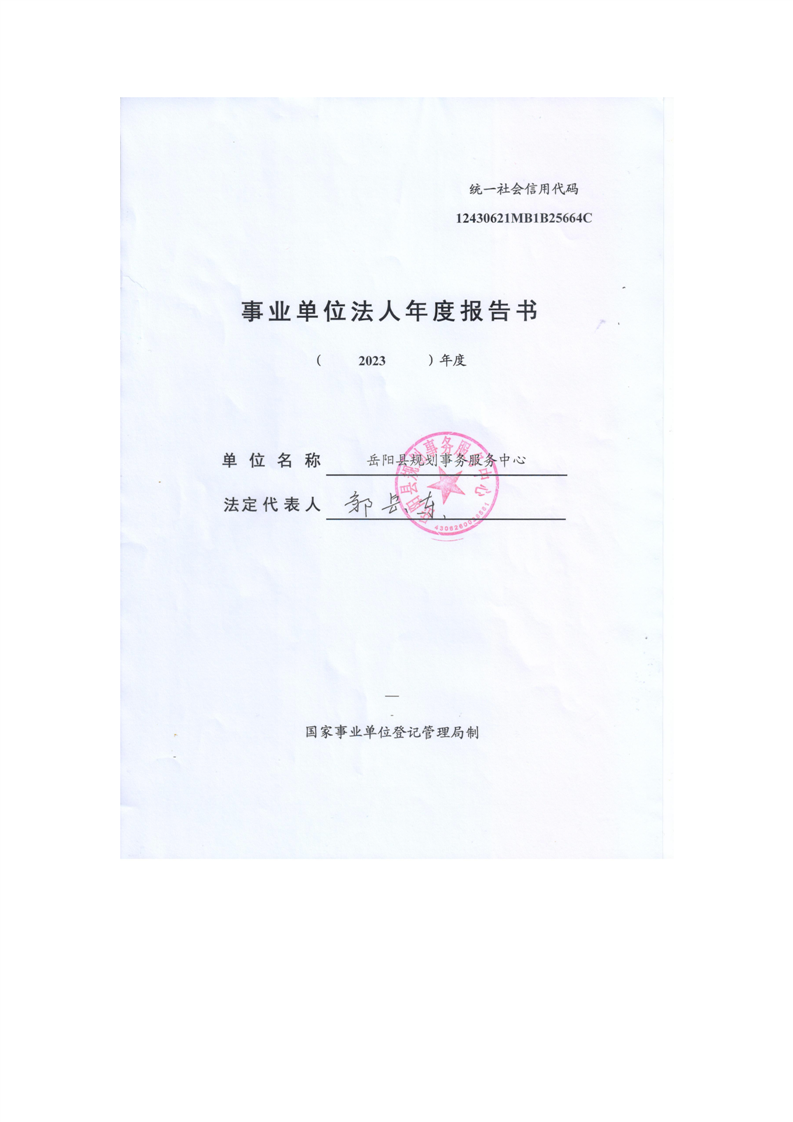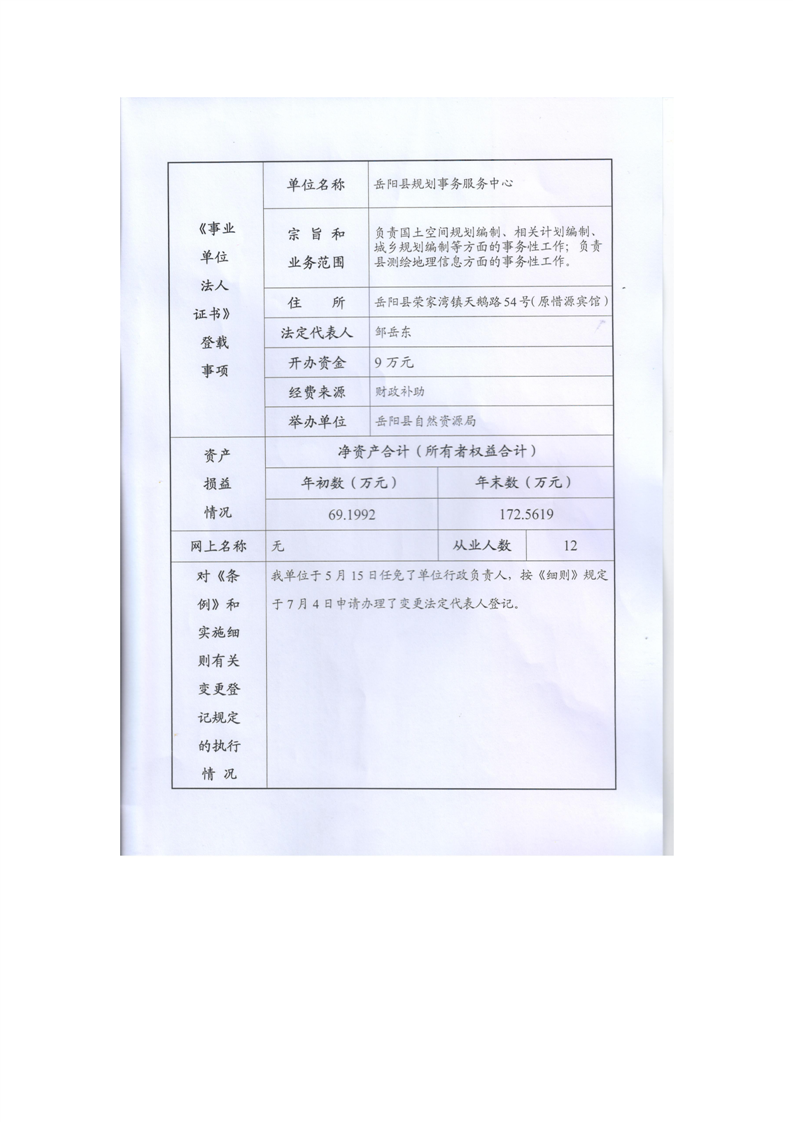 嶽陽縣規劃事務服務中心事業單位法人年度報告書