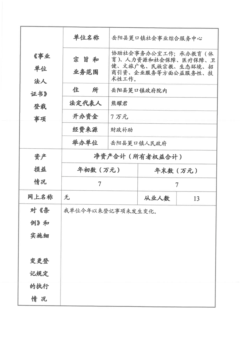 筻口鎮事業單位法人年度報告書-社會事業綜合服務中心