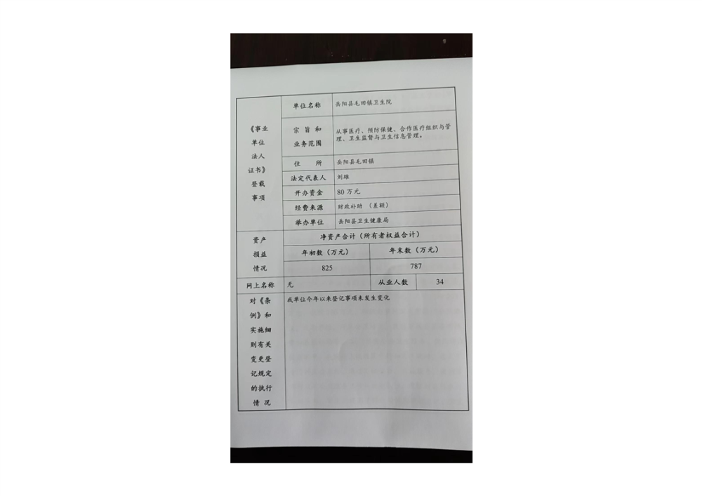 嶽陽縣衛生健康局毛田鎮衛生院年度報告書