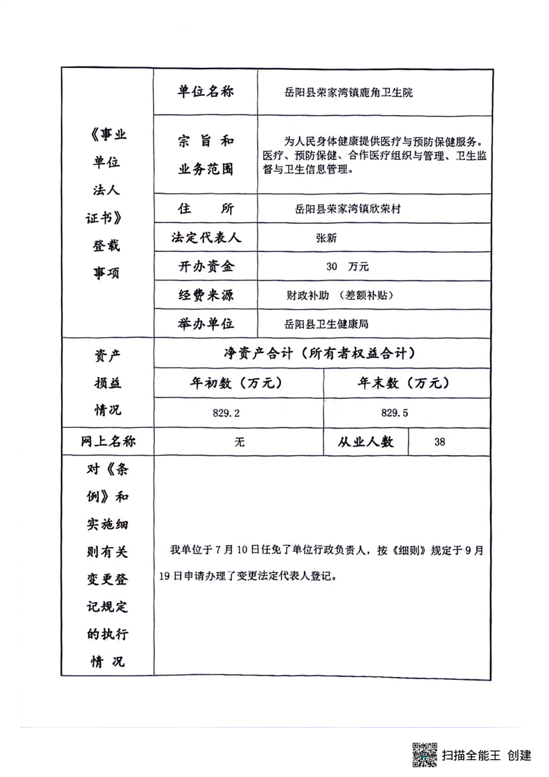 嶽陽縣衛生健康局鹿角衛生院年度報告書
