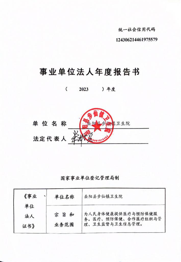 嶽陽縣衛生健康局步仙鎮衛生院年度報告書