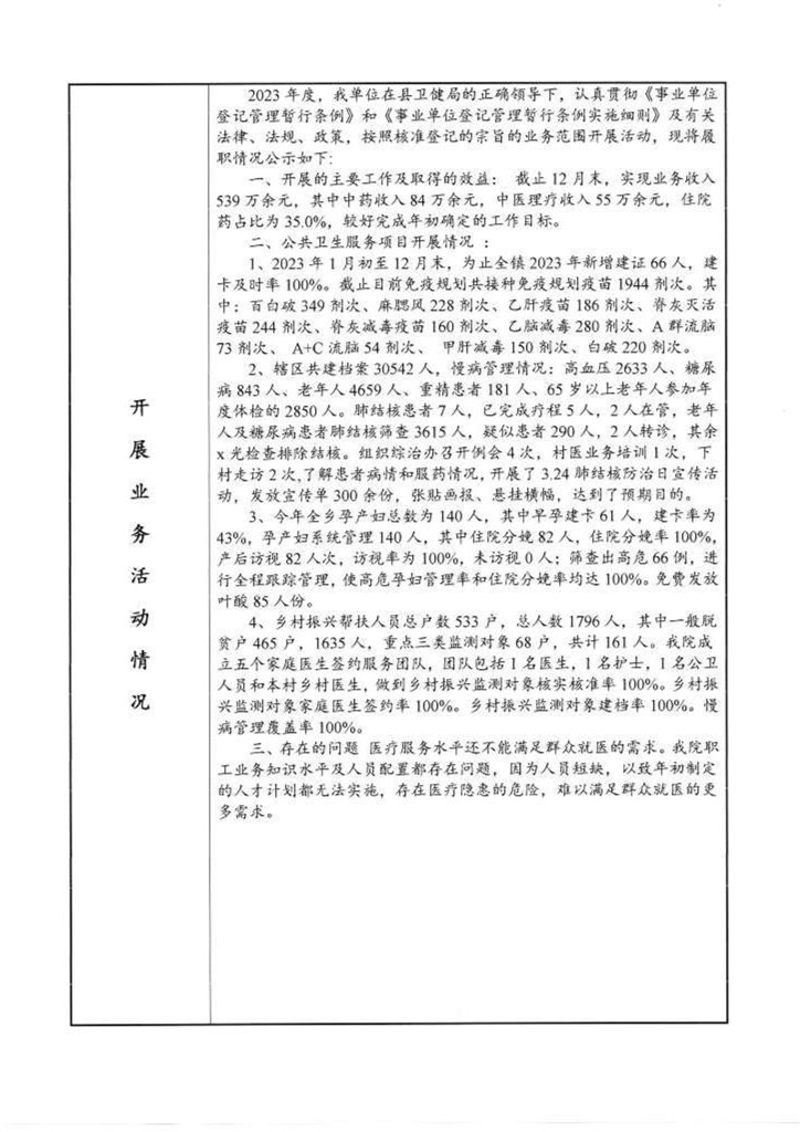 事業單位法人2023年度報告公示