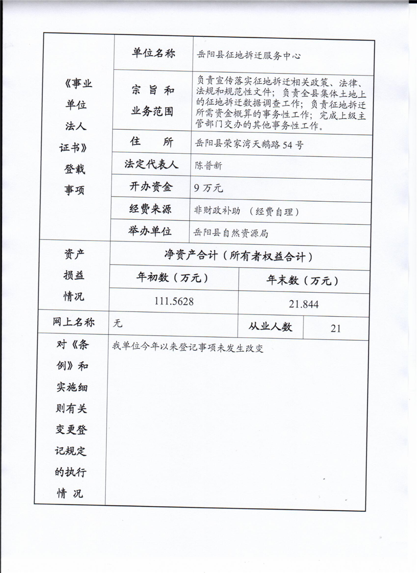 嶽陽縣征地拆遷服務中心事業單位年度報告書