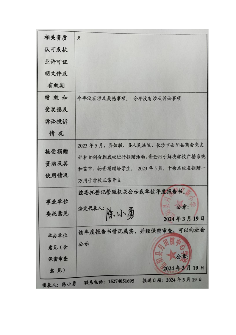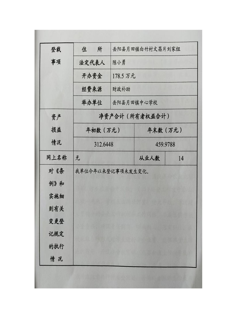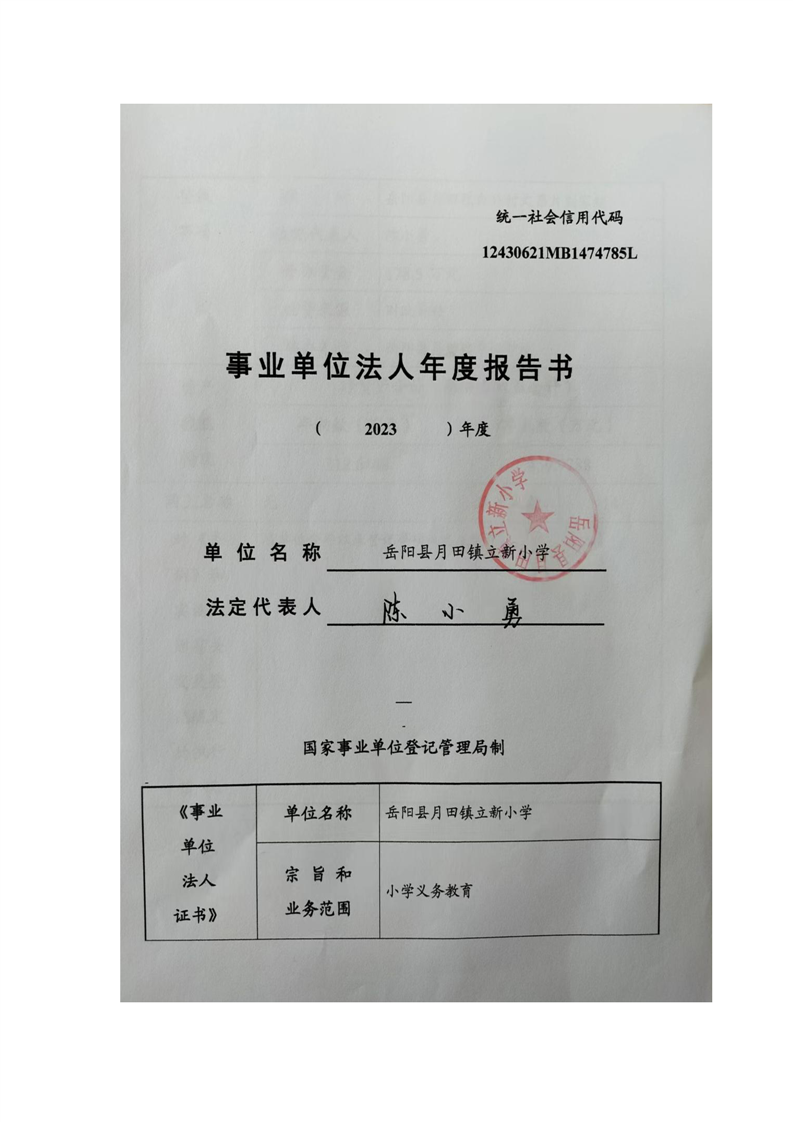 嶽陽縣月田鎮立新小學2023年度法人年報