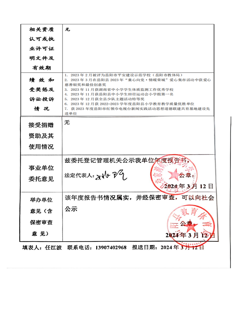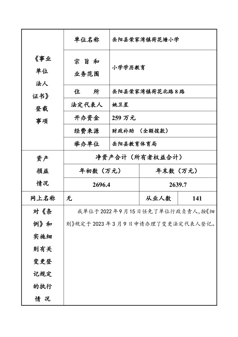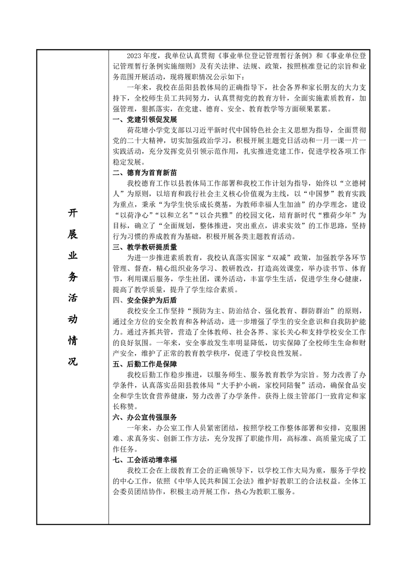 嶽陽縣榮家灣鎮荷花塘小學2023年法人年度報告書