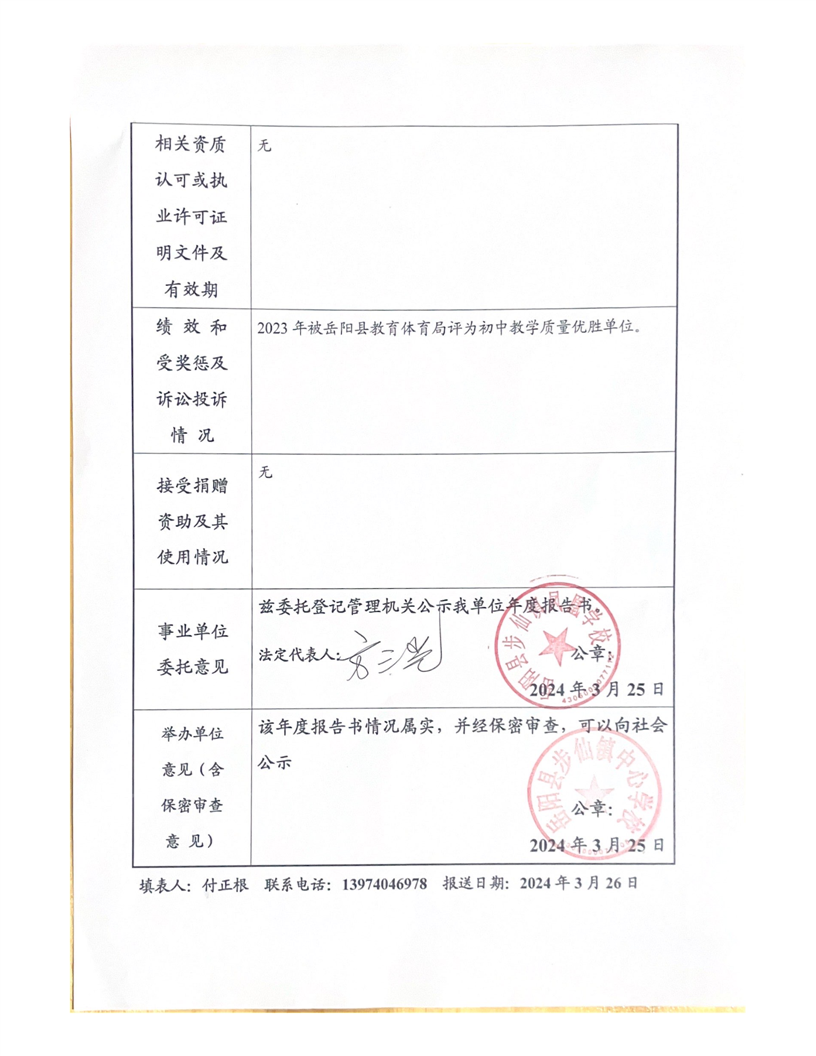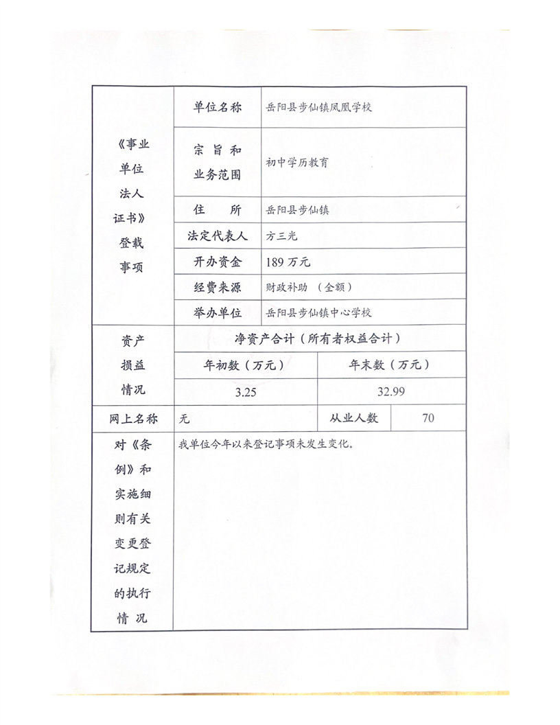 嶽陽縣步仙鎮鳳凰學校2023年度法人年報