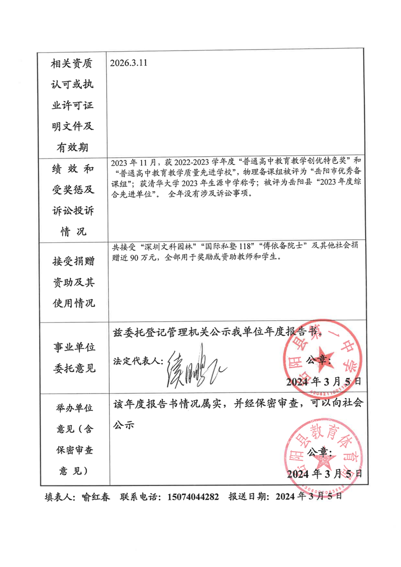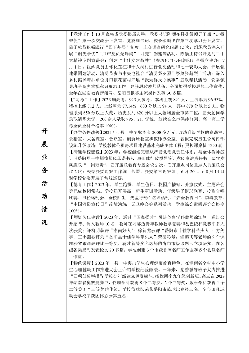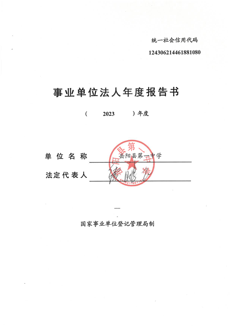 嶽陽縣第一中學2023年法人年度報告