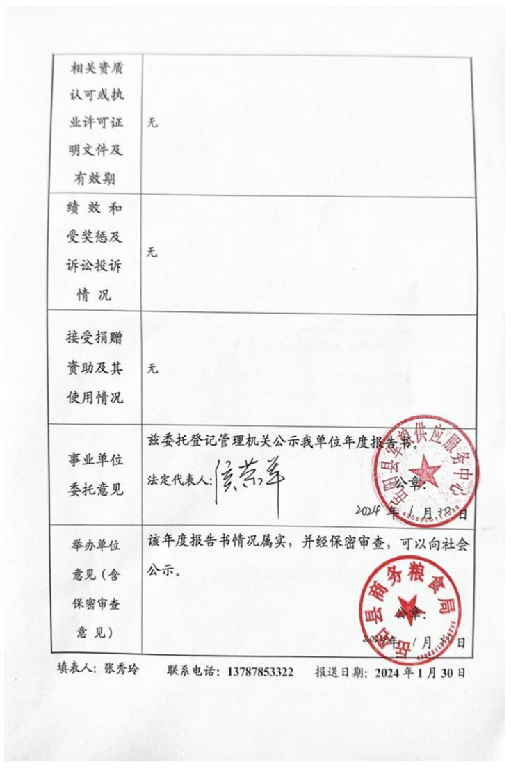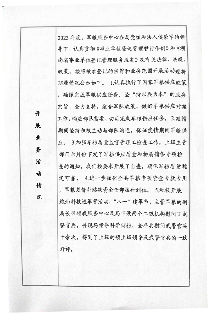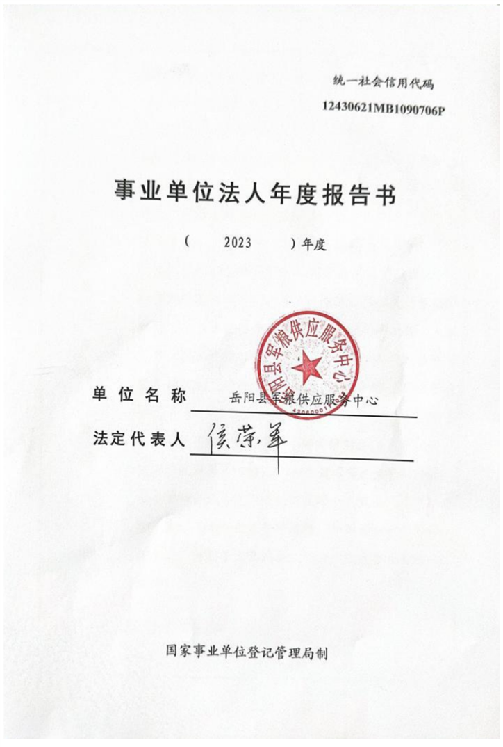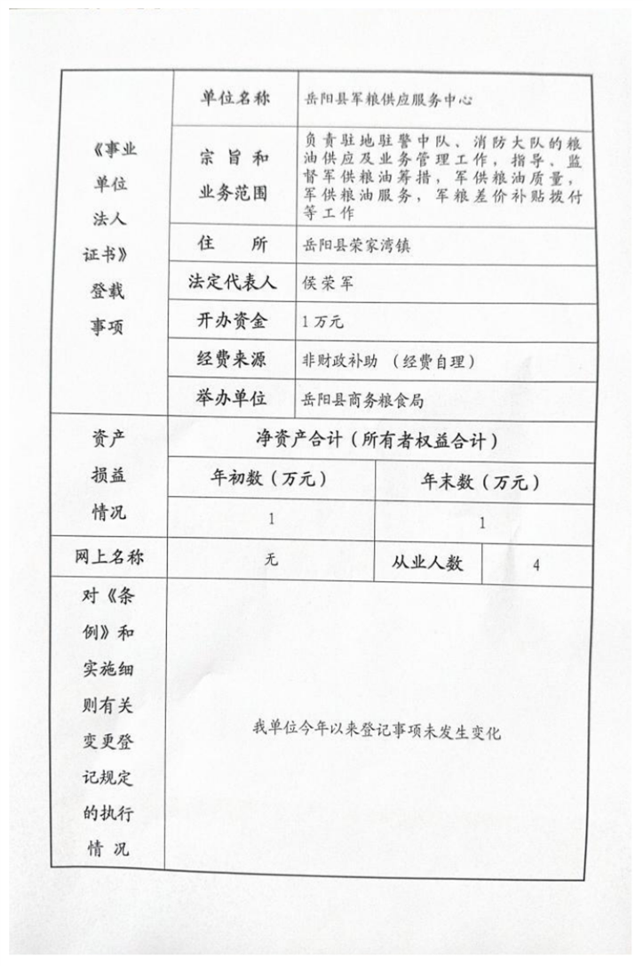 嶽陽縣軍糧供應服務中心事業單位法人年度報告書
