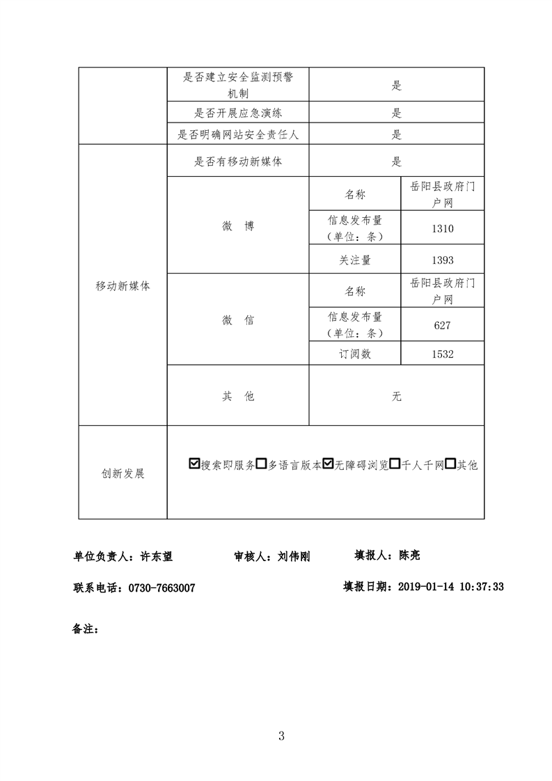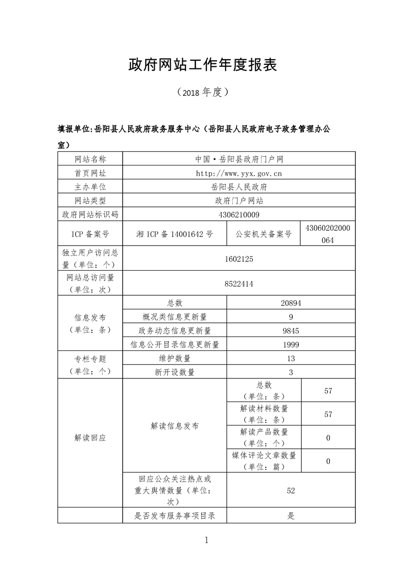 2018年嶽陽縣政府門戶網站工作年度報表