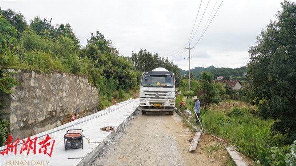 三軸儀隆隆駛過,“滾燙”的混凝土逐漸攤平,與養護工古銅色的皮膚融為一體。這條被汗水反複浸潤的鄉道,終將成為散落村莊的堅韌紐帶,在青山綠水間,托起無數個家庭的生計與遠方。