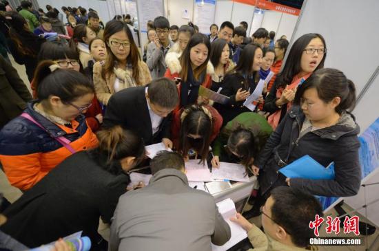 資料圖:在山西太原舉辦的人才智力交流大會上,上萬名應屆大學畢業生湧進現場,尋找工作。中新社發韋亮 攝