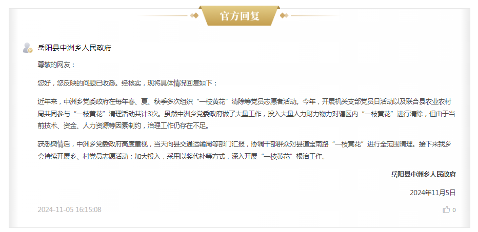 嶽陽縣中洲鄉寶南大道兩邊雜草叢生,外來物種加拿大一枝黃花泛濫成災,兩旁的桂花樹被不知名雜滕纏繞,影響桂花樹生長,鄉林業站不作為,無擔當,望屬地鄉黨委政府引起重視,監督整治。