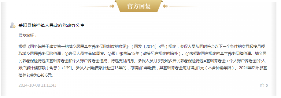 請問嶽陽縣柏祥鎮2023年基礎養老金每個月多少?2024年基礎養老金是多少?