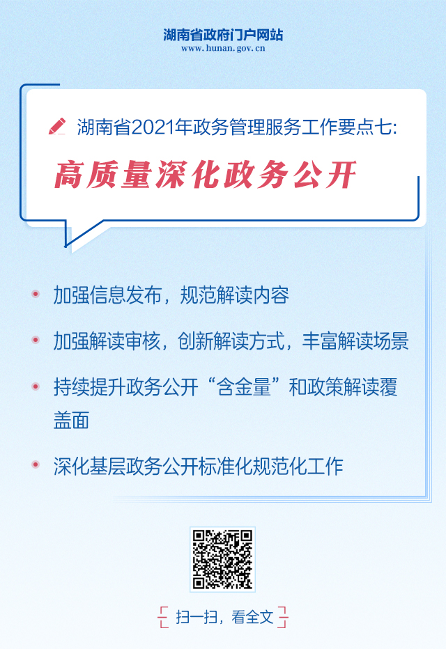 海報 | 湖南省2021年政務管理服務、政務公開工作要點