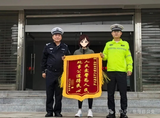 將印有“人民交警為人民 處事公道得民心”錦旗