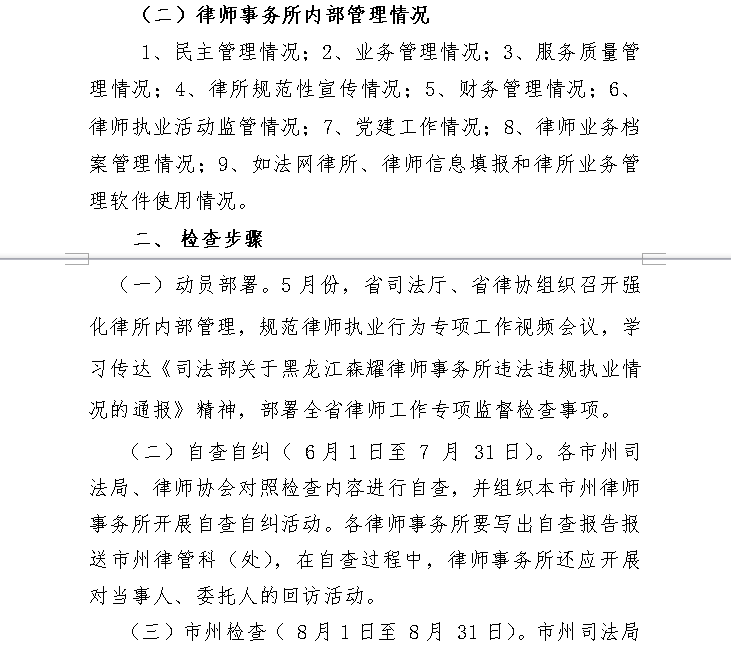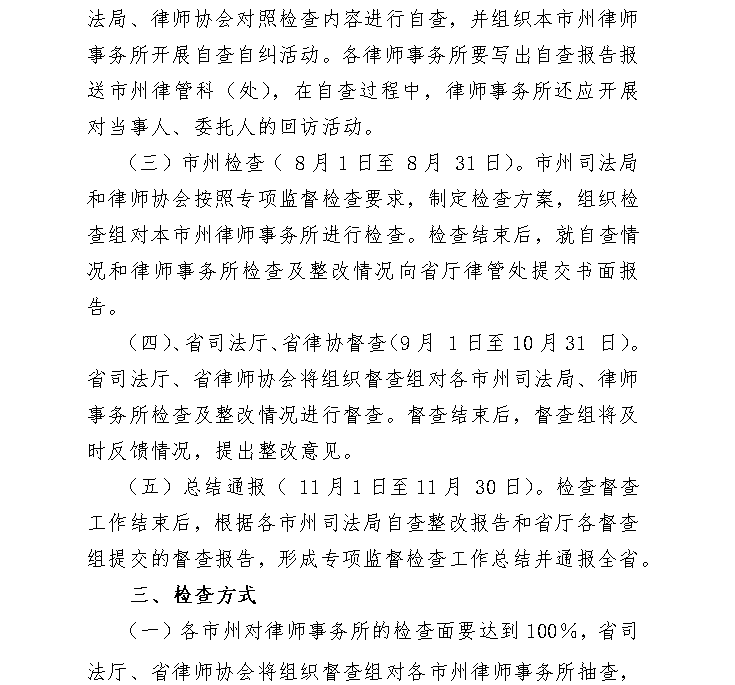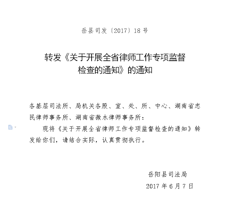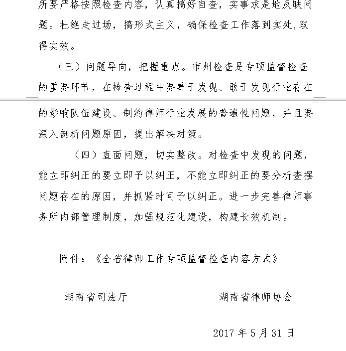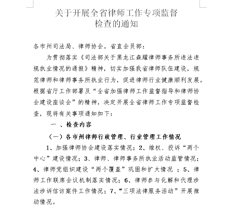 轉發《關於開展全省律師工作專項監督 檢查的通知》的通知